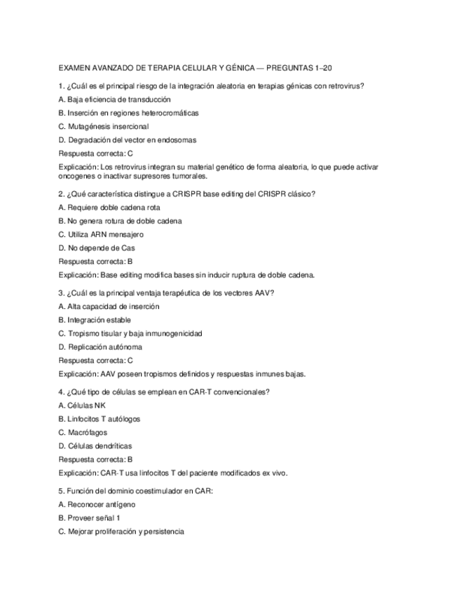 He publicado nuevos examenes de 4º Terapia Génica y Celular: TESTS para estudiar