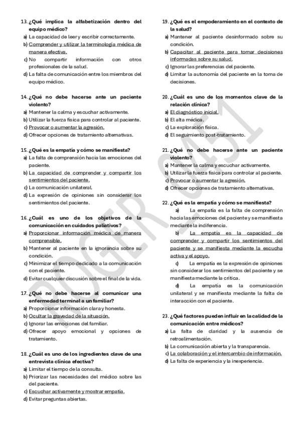 Recopilación de preguntas de exámenes de comunicación asistencial.
