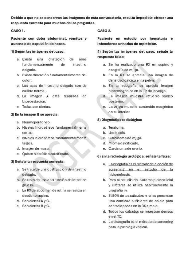 Examen del HUVR de enero de 2018. Como no se conservan las imágenes del examen, no se pueden resolver todas las preguntas.