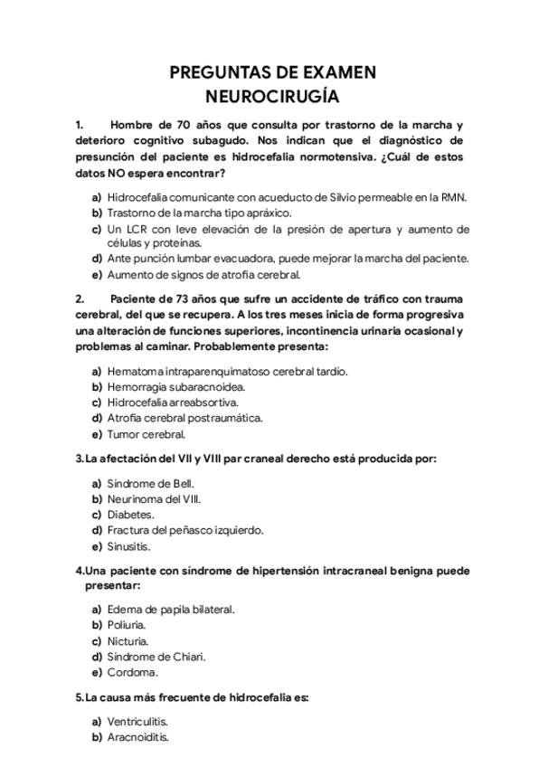 He publicado nuevos examenes de 5º Patología Quirúrgica de Sistemas Endocrino y Mama. Traumatología y Ortopedia. Maxilofacial. Urología: Exámenes - NEUROCIRUGÍA