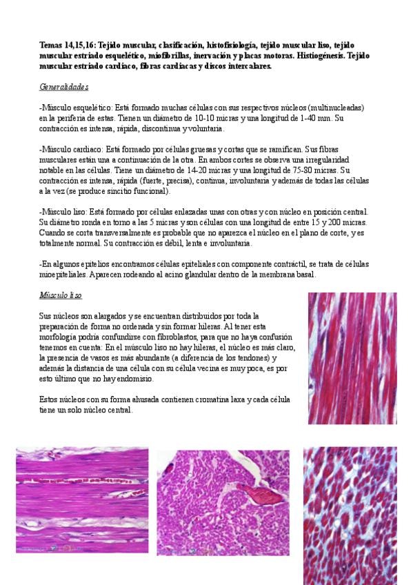 He publicado nuevos apuntes de 1º Histología Humana: Tejido muscular histología. Temas 14,15,16.pdf