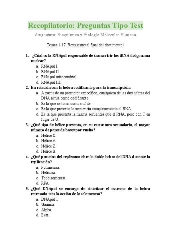 He publicado nuevos examenes de 1º Bioquímica y Biología Molecular Humana: Exámenes