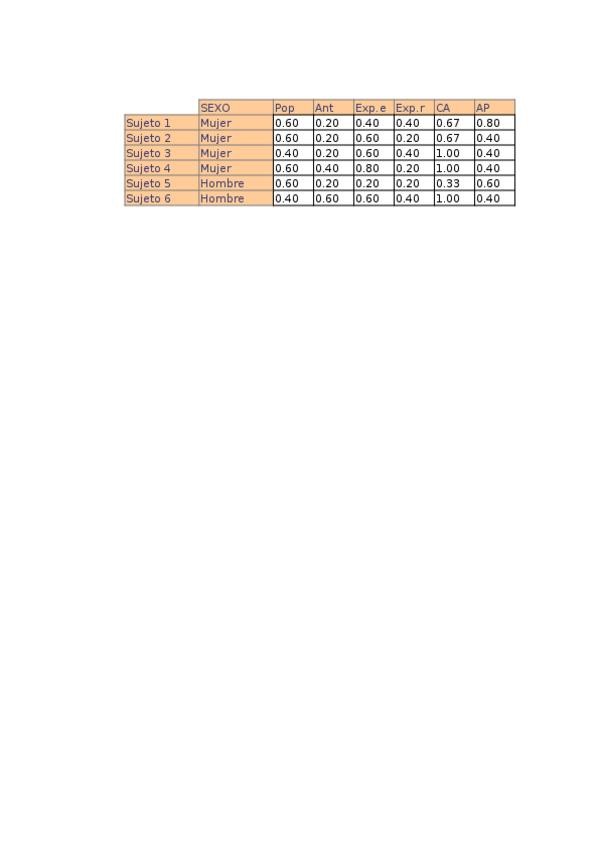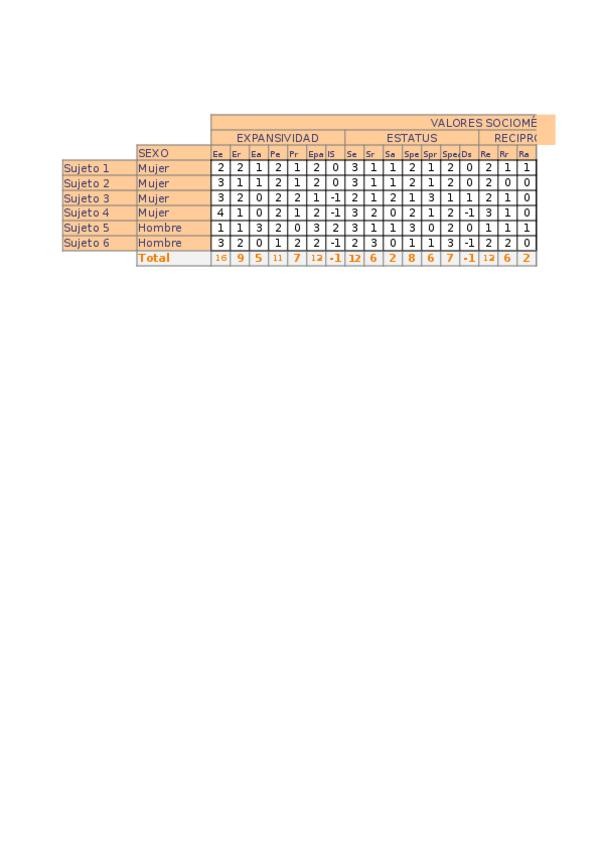 TABLA de los valores individuales del test sociométrico de Psicología social.
