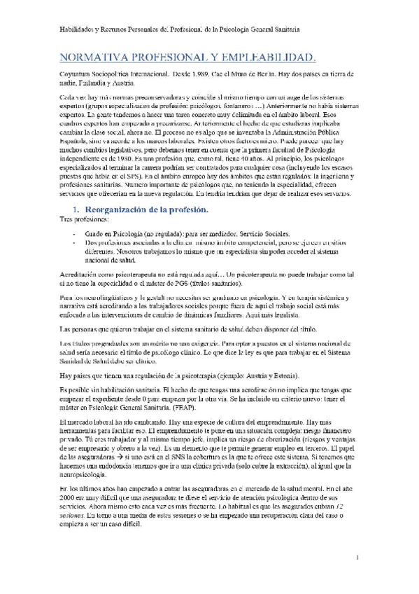 He publicado nuevos apuntes de 1º Habilidades y Recursos Personales del Profesional de la Psicología General Sanitaria: Normativa-Profesional-y-Empleabilidad.pdf