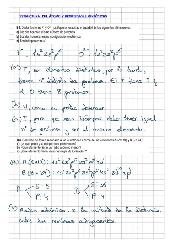 Ejercicios resueltos de estructura atómica y propiedades periódicas selectividad 2025
