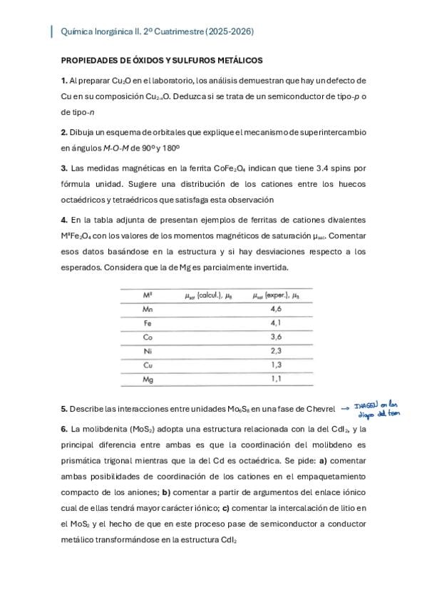 He publicado nuevos ejercicios de 3º Quimica Inorganica II: Boletin-propiedades-oxidos-y-sulfuros-metalicos.pdf