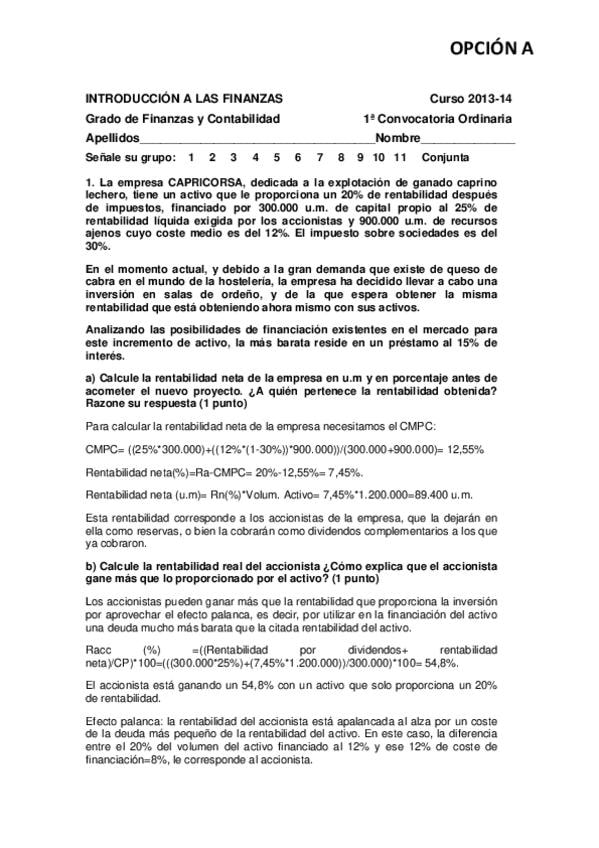 Exámenes Resueltos Introducción Finanzas