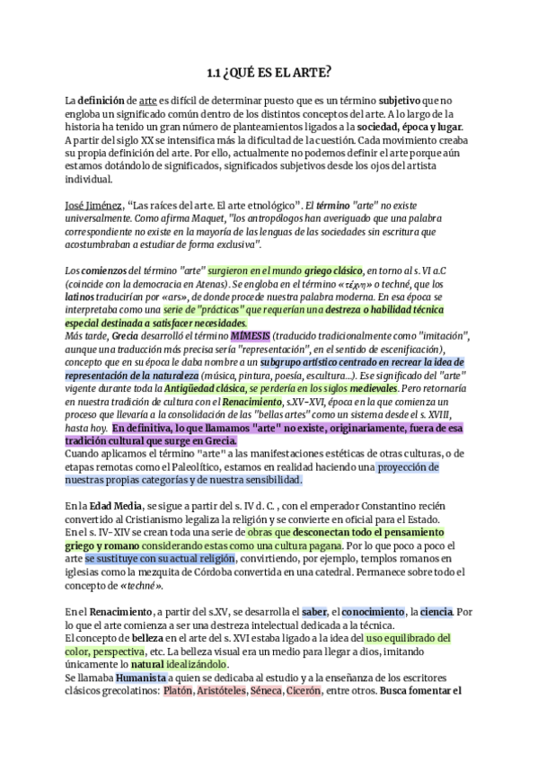 Estos son los apuntes que utilicé el tercer año de carrera en la asignatura de teoría del arte. Con ellos saqué un 8.