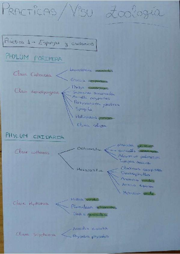 Esquemas para examen prácticas zoo con lo que hay que saber. Con anotaciones guía para distinguir unas especies de otras.