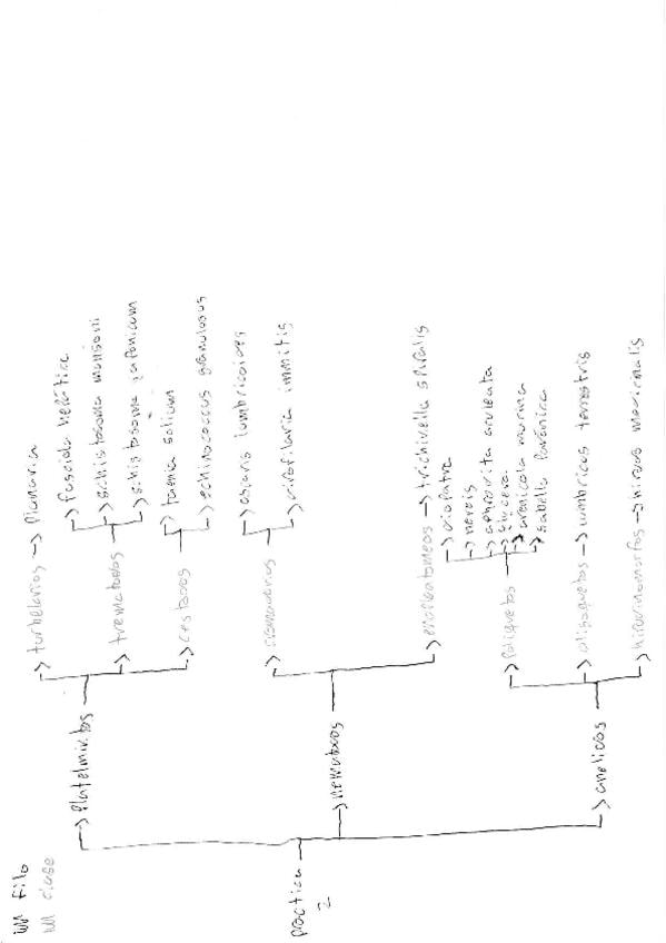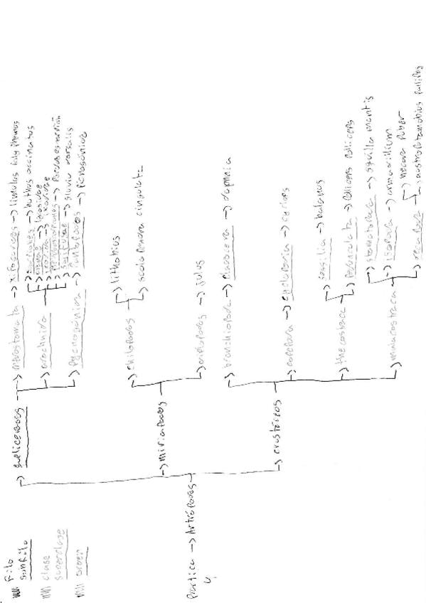 Esquemas con todos los animales de practicas organizados segun su taxonomia