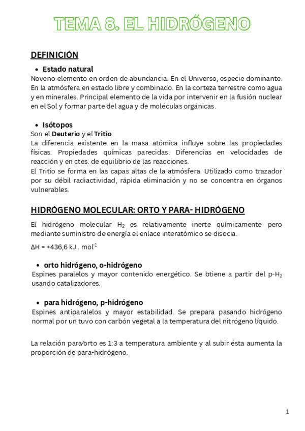 Apuntes del Tema 8: el Hidróheno
