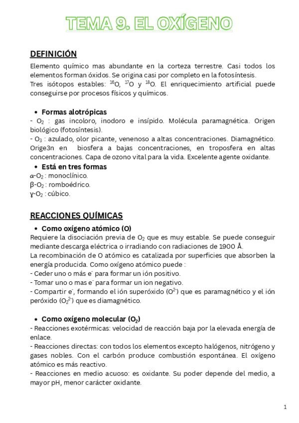 Apuntes del Tema 9: el Oxígeno