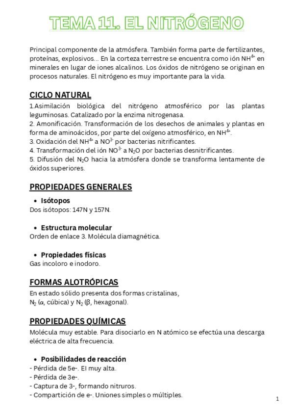 Apuntes del Tema 11: Nitrógeno