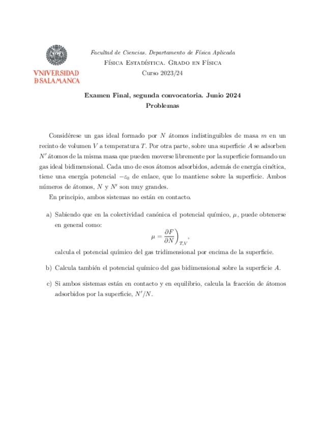 He publicado nuevos examenes de 3º Física Estadística: ParcialFisicaEstadisticaProblemas.pdf