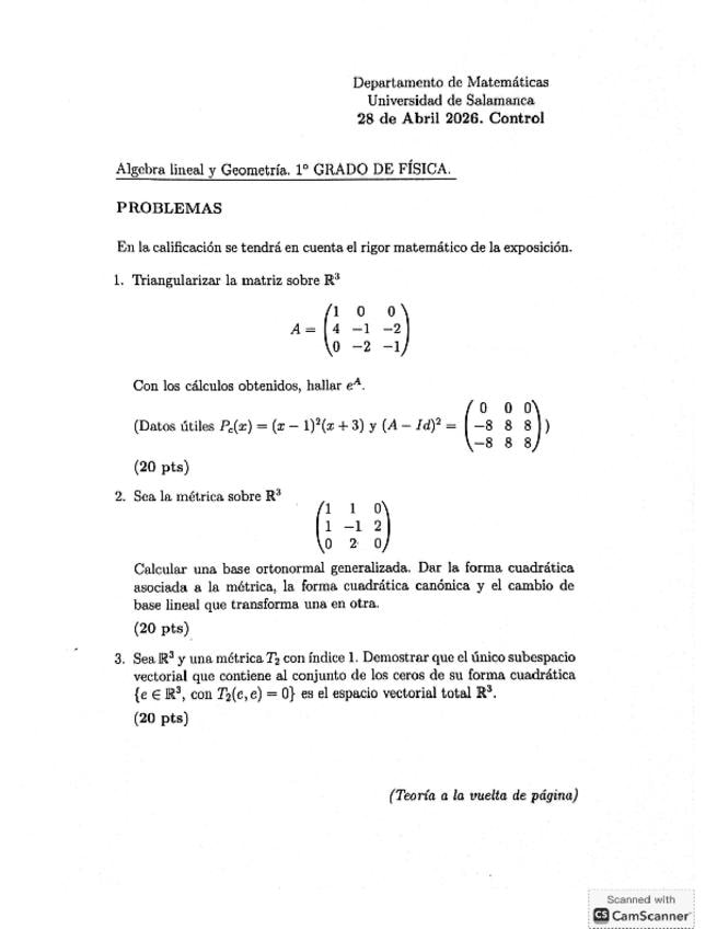 Parte de Problemas del final de convocatoria ordinaria de algebra 2 en el curso 2024/2025