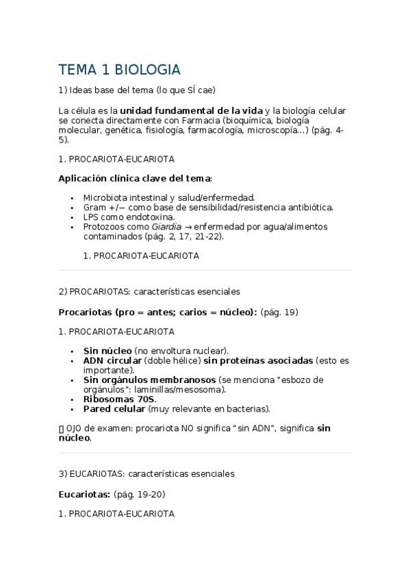 Test No oficiales Tema 1 Biologia Celular Primer Curso , USAL para practicar el contenido