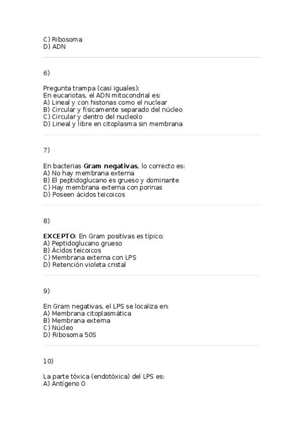 He publicado nuevos examenes de 2º Microbiología I: Preguntas 2º parcial