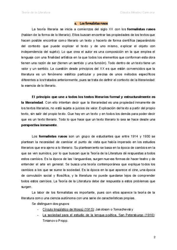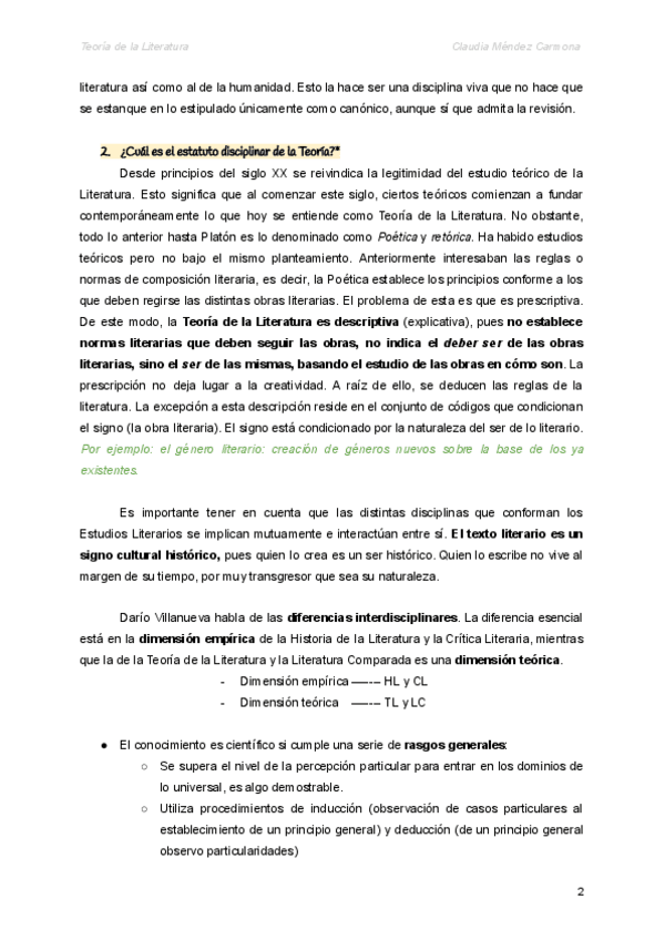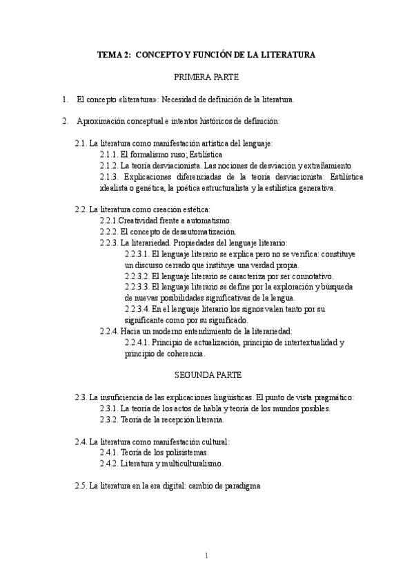 Apuntes tema 2 de Teoría de la Literatura (Curso 2023-2024). Tema importante para el examen!!