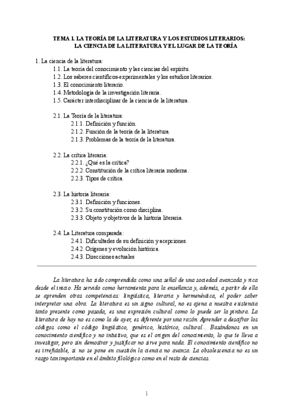Apuntes tema 1 de Teoría de la Literatura del grado de Lenguas, Literaturas y Culturas románicas (curso 2023-2024)