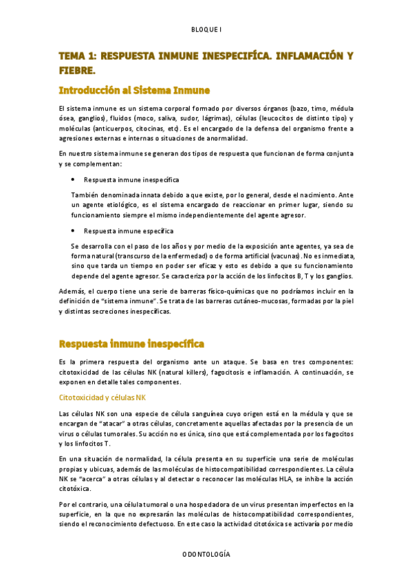 Tema 1 de la asignatura Fundamentos en Medicina Clínica (Fisiopatología), donde se explican las generalidades del sistema inmune inespecífico.
