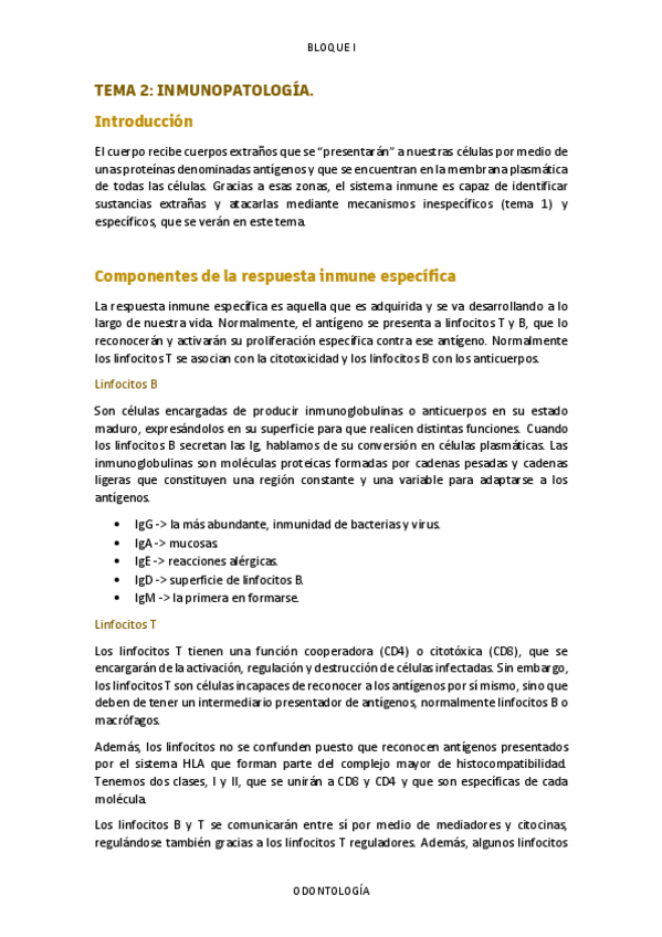 Tema 2 de la asignatura Fundamentos en Medicina Clínica: Fisiopatología y Semiología sobre inmunopatología