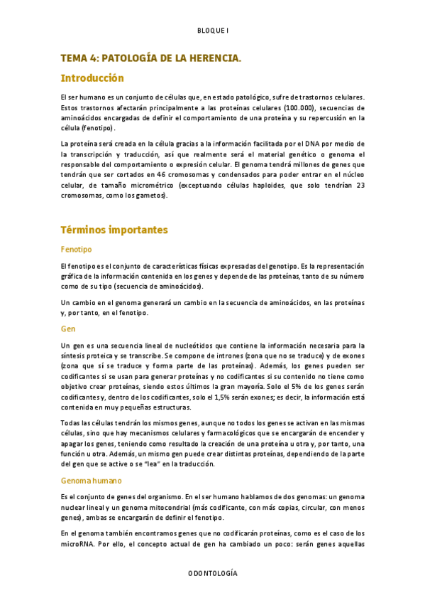 Tema 4 del primer bloque de contenidos de la asignatura Fisiopatología sobre patología de la herencia.