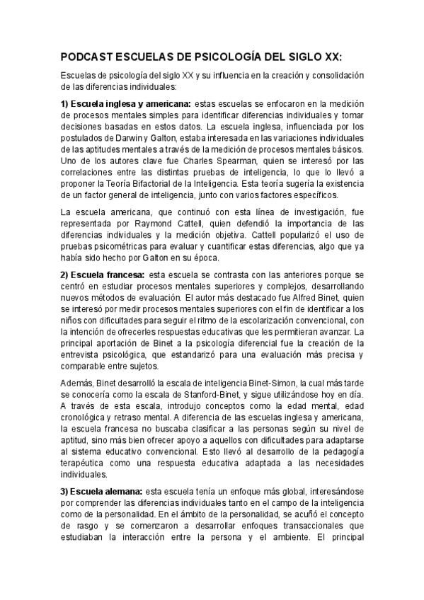 Resumen del podcast de las escuelas de psicología