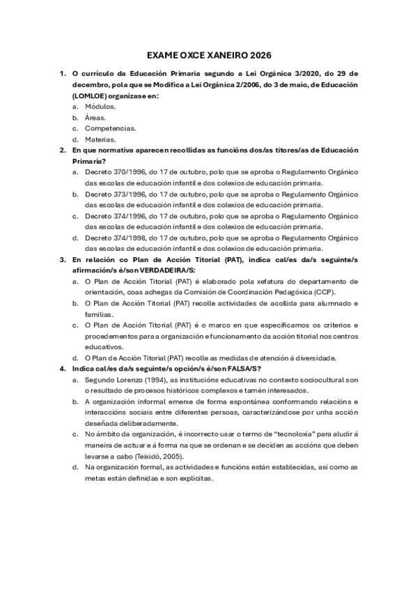 He publicado nuevos examenes de 2º Organización y Gestión del Centro Escolar: Exame-e-solucion-OXCE-xaneiro-2026.pdf