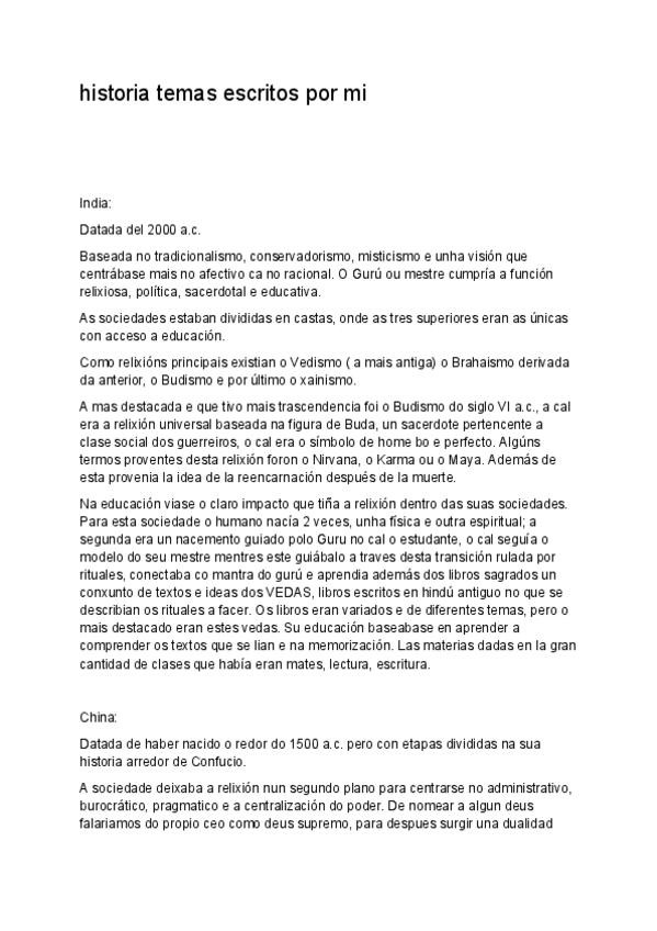 Estos apuntes por si los quiere leer alguien fueron para el examen de historia del primer año de magisterio de lugo con Candia. Aun no se la nota, los hice solo para repasar y leerlos antes del examen. Sería una guía para leerse antes de empezar a estudia