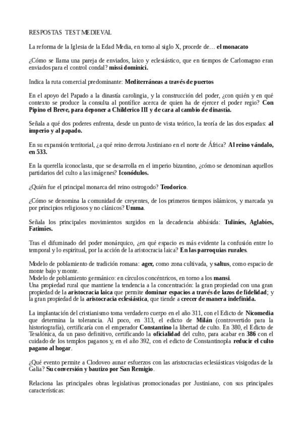 Resumen de los temas de Historia Medieval II adaptados para examen.