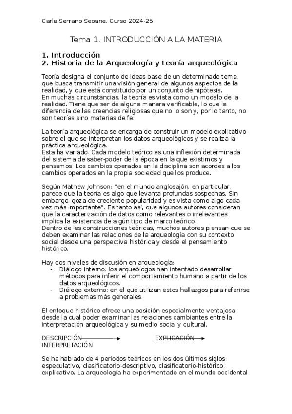 Apuntes Introducción á arqueoloxía