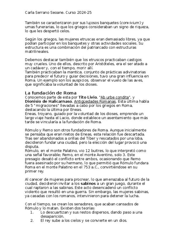 Apuntes de Historia Antigua II o Historia de Roma. Realizados a partir de las explicaciones de clase del año 2020/2021.