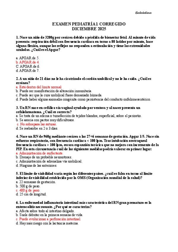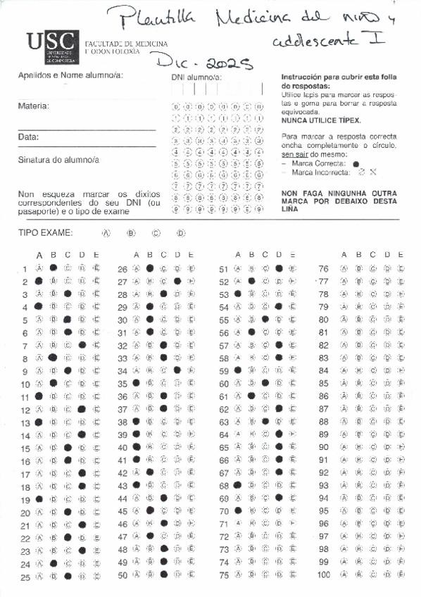 Plantilla respuestas correctas examen Pediatria 1 . DICIEMBRE 2025