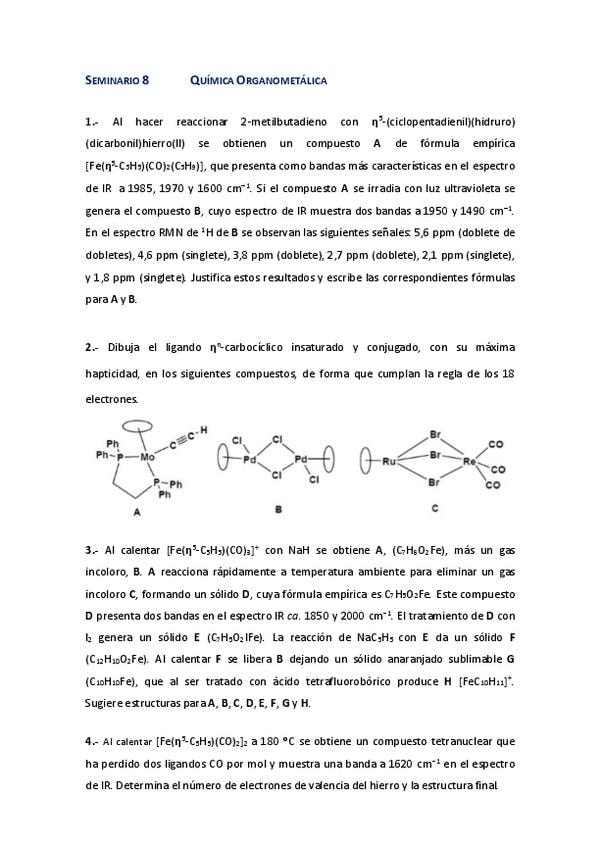He publicado nuevos ejercicios de 3º Química Organometálica: SEMINARIO-8.pdf.pdf