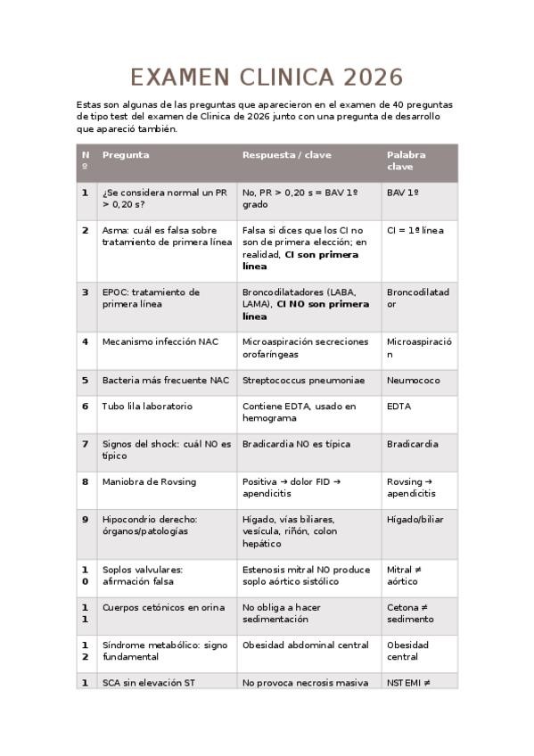 Examen clinica de 2026, algunas de las preguntas que pude recordar, la mayotia eran indica la falsa o la verdadera. También aparece una pregunta de desarrollo.