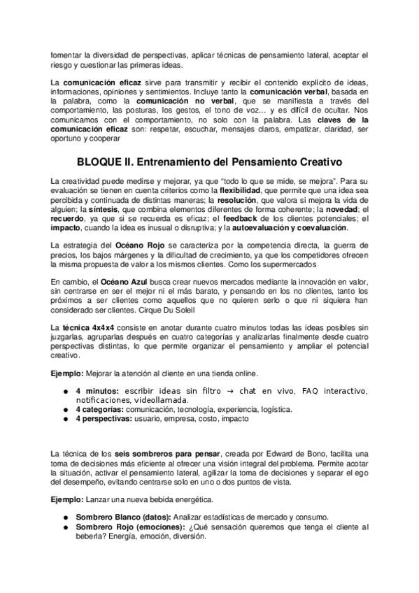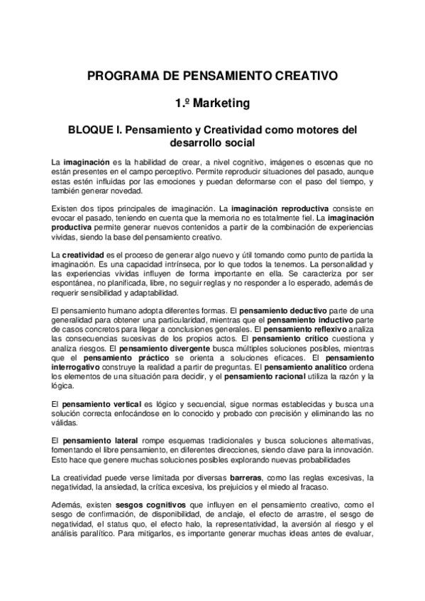 Estos son los apuntes de 10 para la asignatura de Pensamiento Creativo.