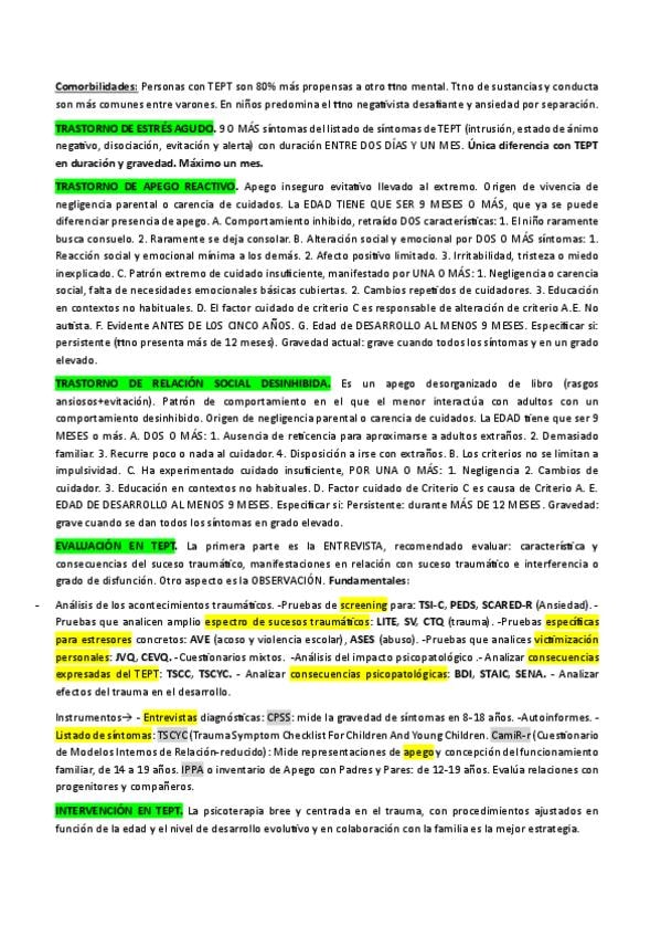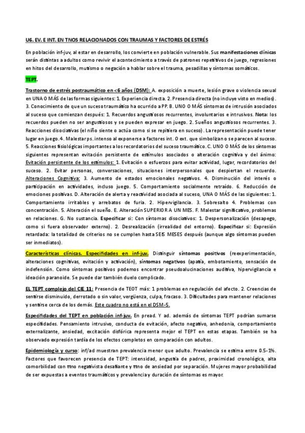 Apuntes redactados de Infancia. UNIDAD 2: EVALUACIÓN E INTERVENCIÓN PSICOLÓGICA EN PROBLEMAS DEL NEURODESARROLLO EN INFANCIA Y ADOLESCENCIA. Con asteriscos y comentarios en otro color en lo enfatizado en las clases de repaso de la unidad.
