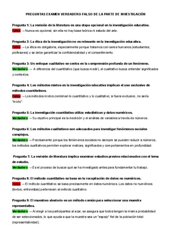 Preguntas Corregidas del examen Verdadero y Falso de la parte de investigación Noé