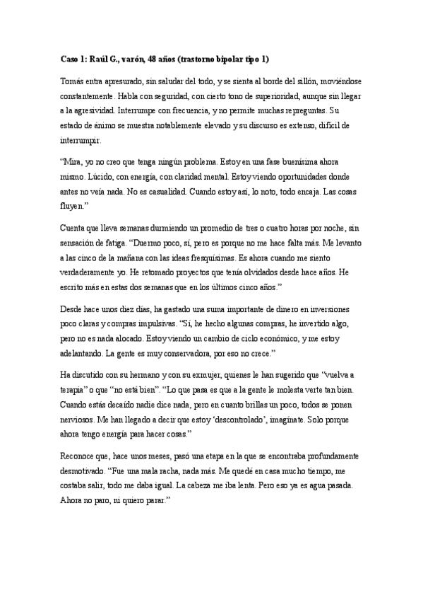 He publicado nuevos ejercicios de 3º Psicopatología: Casos-psicopatologia.pdf