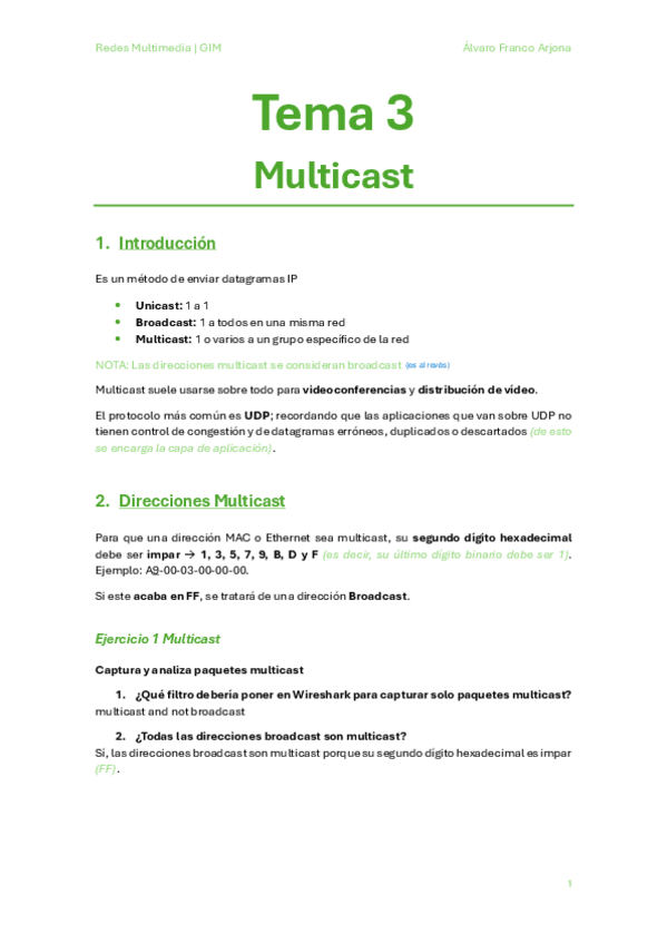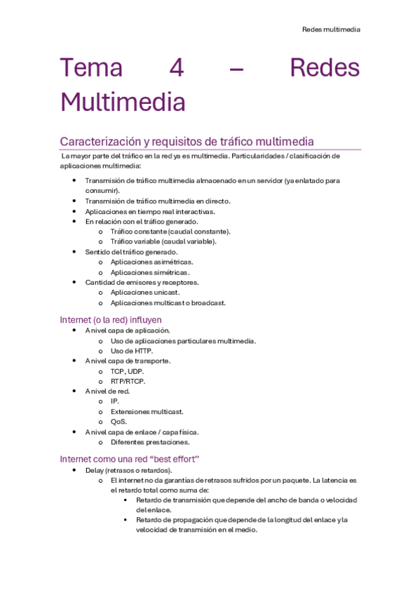 Apuntes de todos los temas de Redes Multimedia, con ejercicios resueltos de clase y explicaciones extra