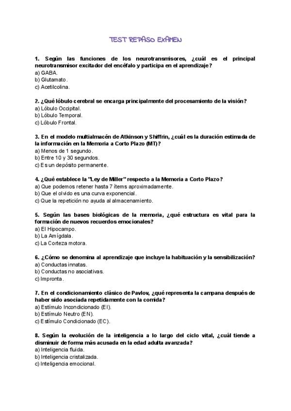 Test de Repaso con las respuestas bajo. Anatomía Bloque Sistema Nervioso.