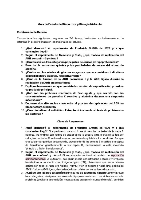 Resumen del bloque 1 de bioquímica, engloba los tema 1 al 6. Al final hay preguntas de examen con la respuesta y explicación.