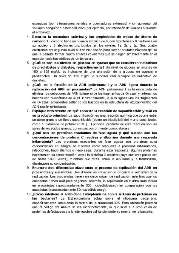 Ejercicios de desarrollo de unidad 1 de bioquímica. Tipo preguntas desarrollo examen