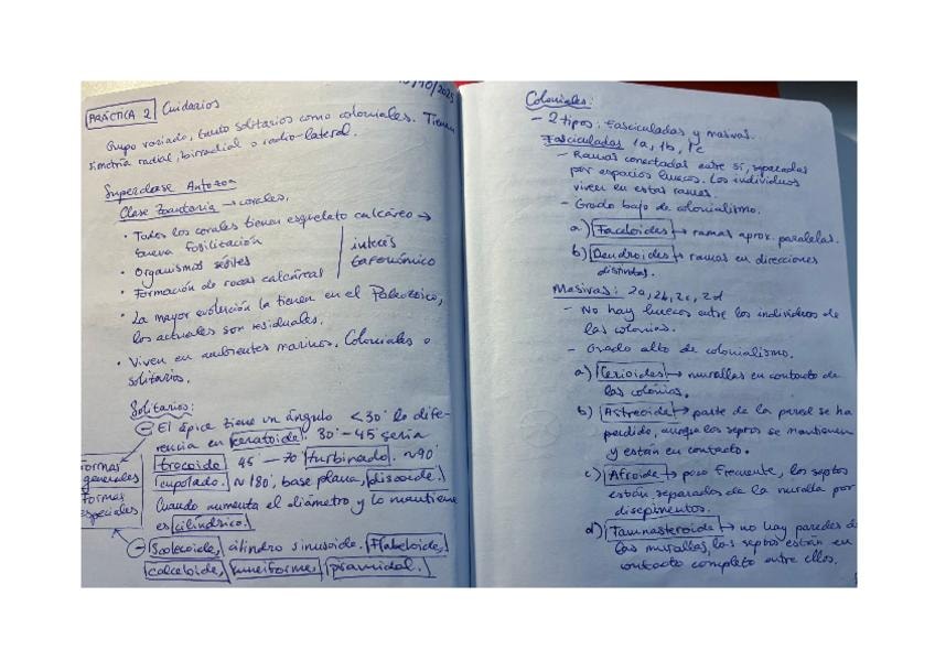 Apuntes Práctica 2 Paleontología: Cnidarios. Profesor: Nacho. Más exámenes y apuntes en mi perfil!