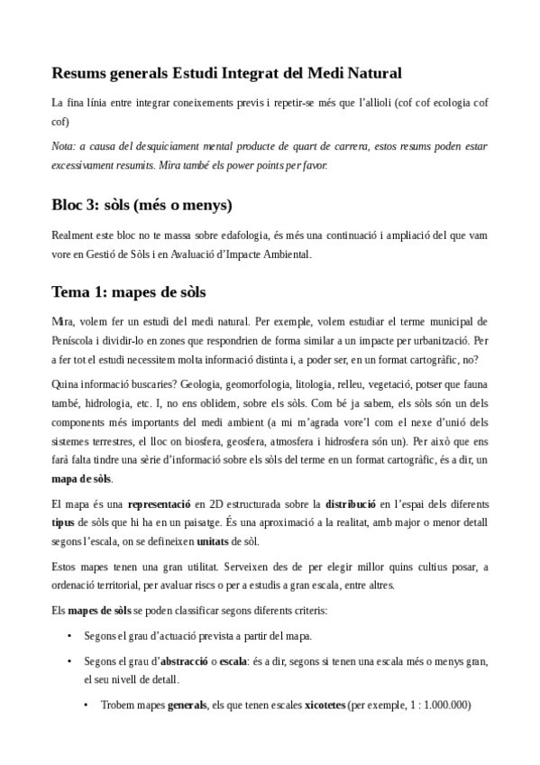He publicado nuevos apuntes de 3º Gestión y Conservación de Suelos y Aguas: Resums generals Gestió i Conservació de Sòls i Aigües