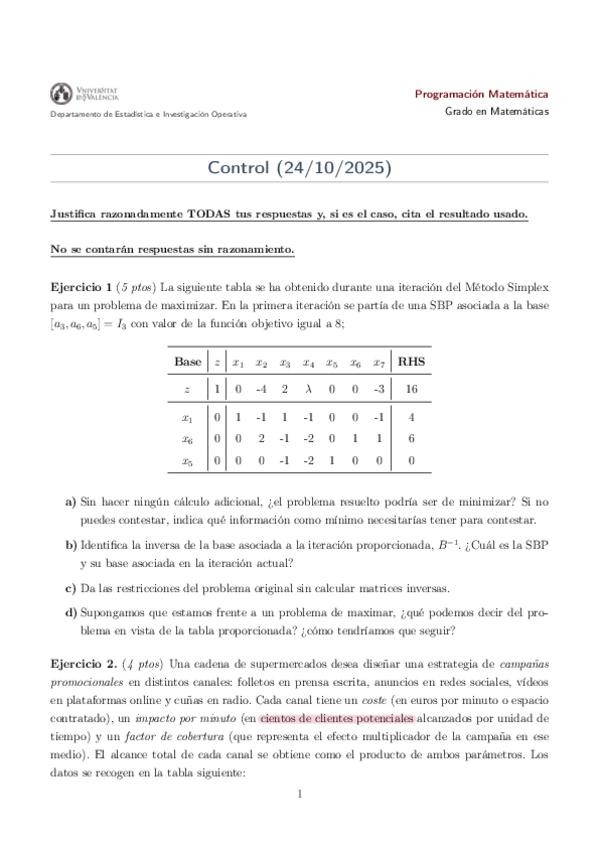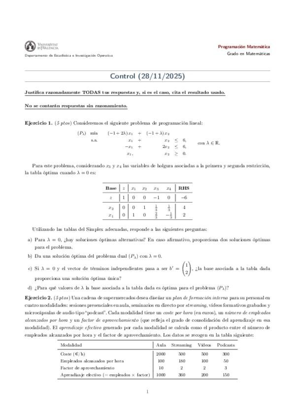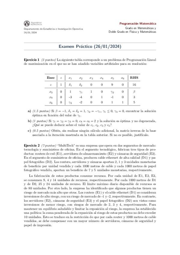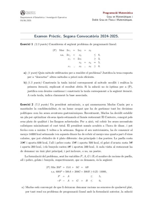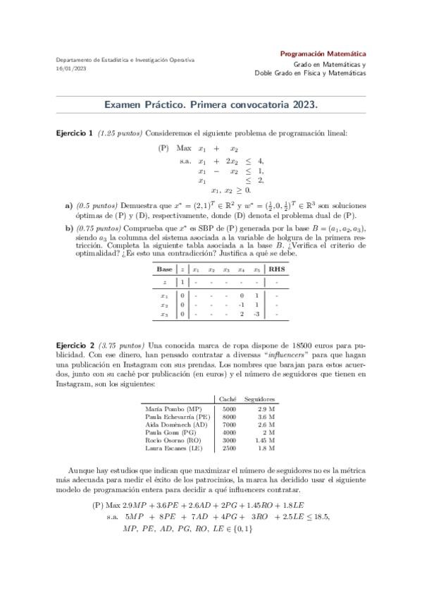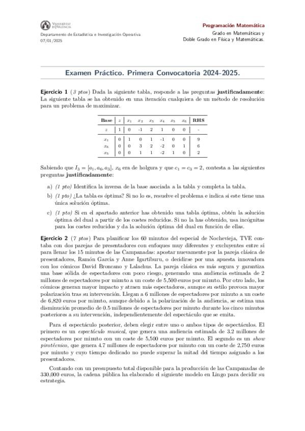 Examen de Prácticas de la primera convocatoria de Programación Matemática de 2025 corregido por Consuelo. ¡Mucha suerte en tus exámenes!