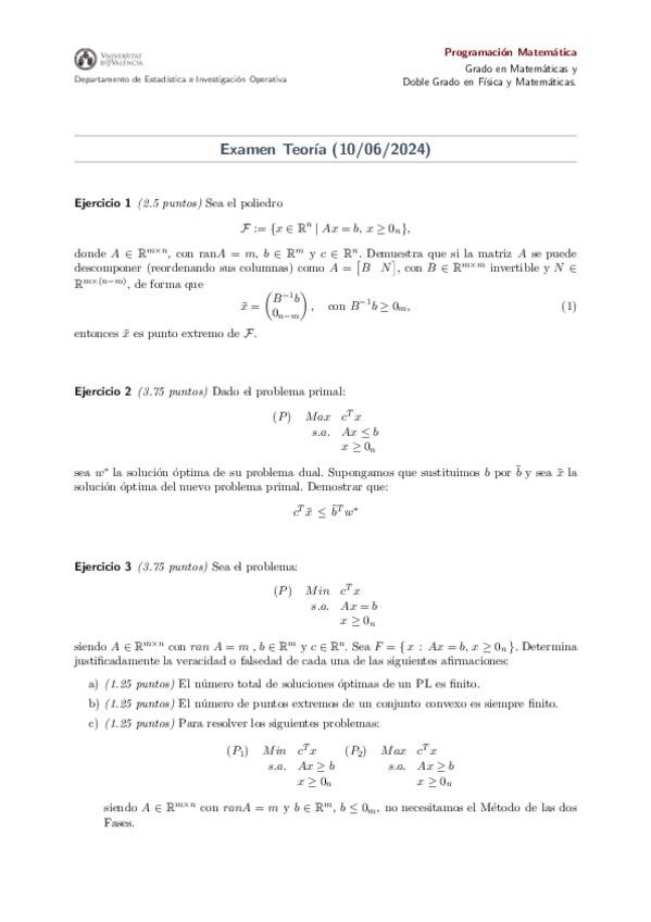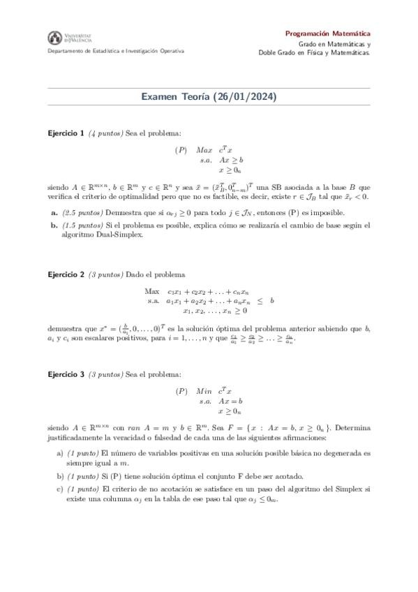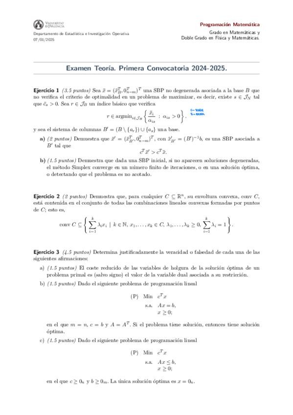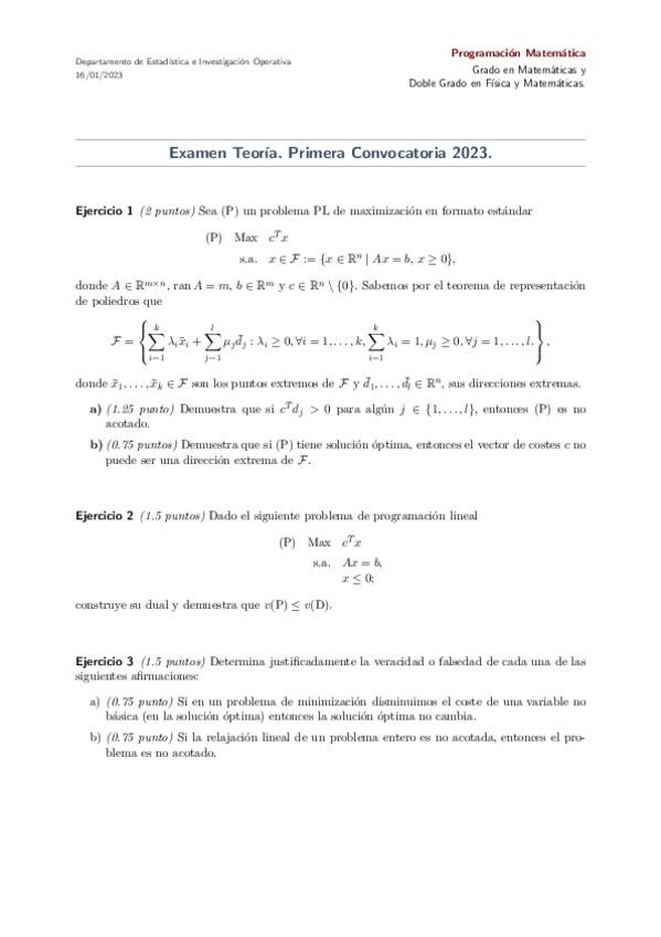 Examen de Teoría de la primera convocatoria de Programación Matemática corregida por la profesora Consuelo. ¡Mucha suerte en los exámenes!