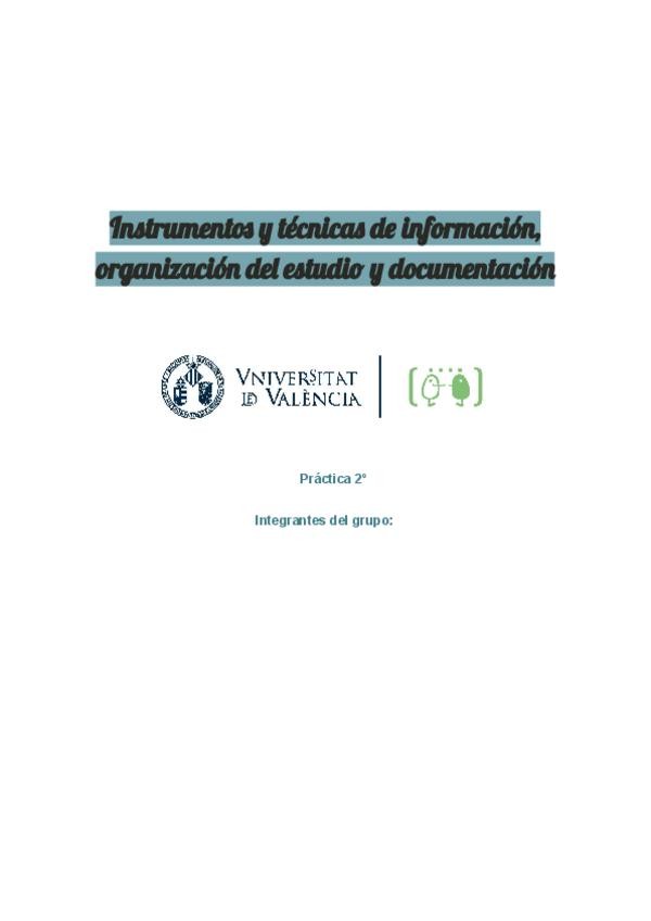 He publicado nuevos practicas de 1º Instrumentos y Técnicas de Información, Organización del Estudio y Documentación: Instrumentos.pdf