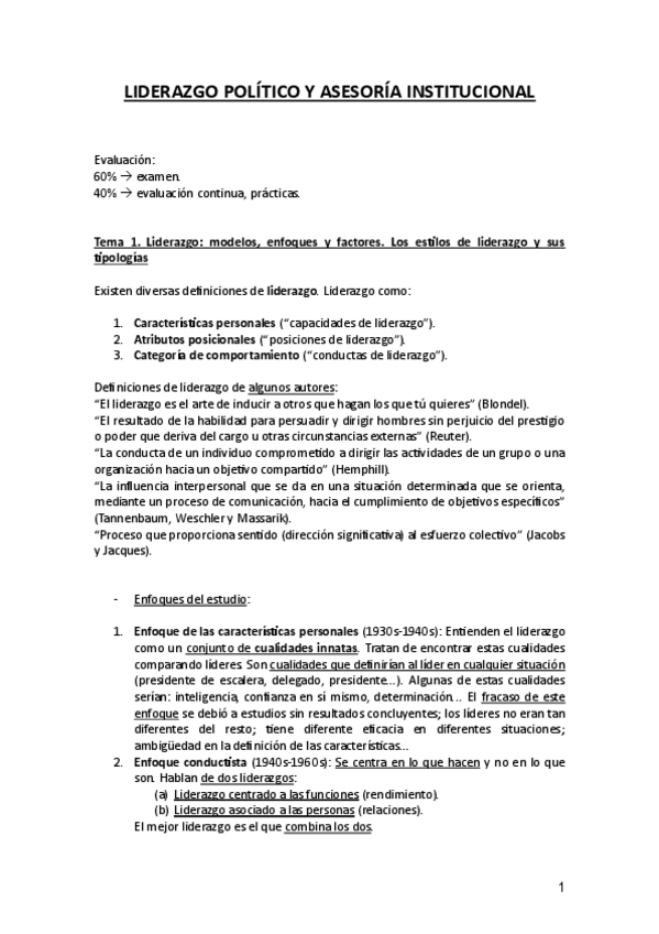 Apuntes Liderazgo político y asesoría institucional, 4º CCPP