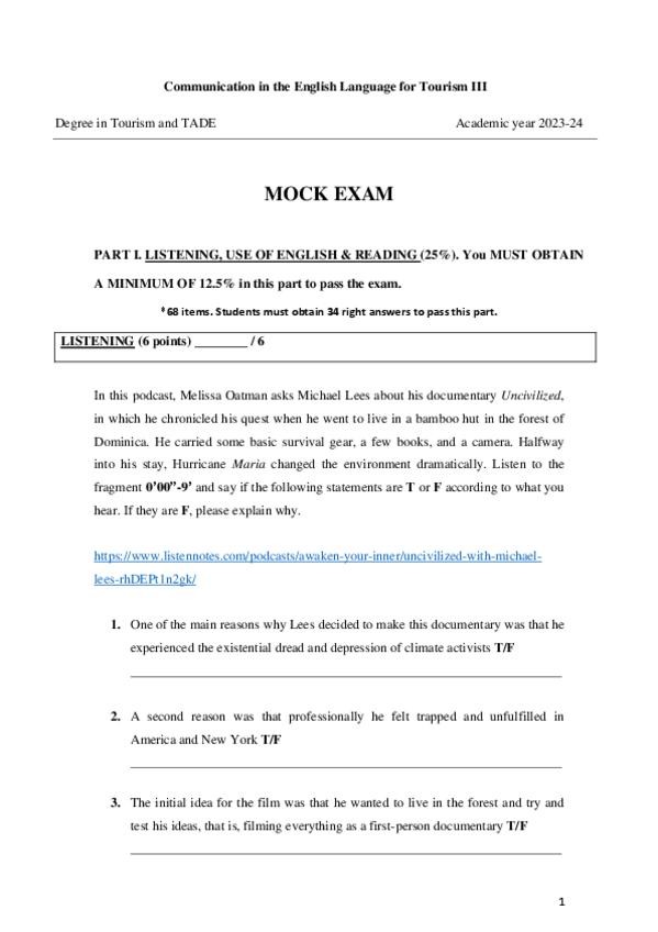 He publicado nuevos examenes de 3º Comunicación en Segunda Lengua Extranjera para Turismo III: EJEMPLO-EXAMEN.pdf